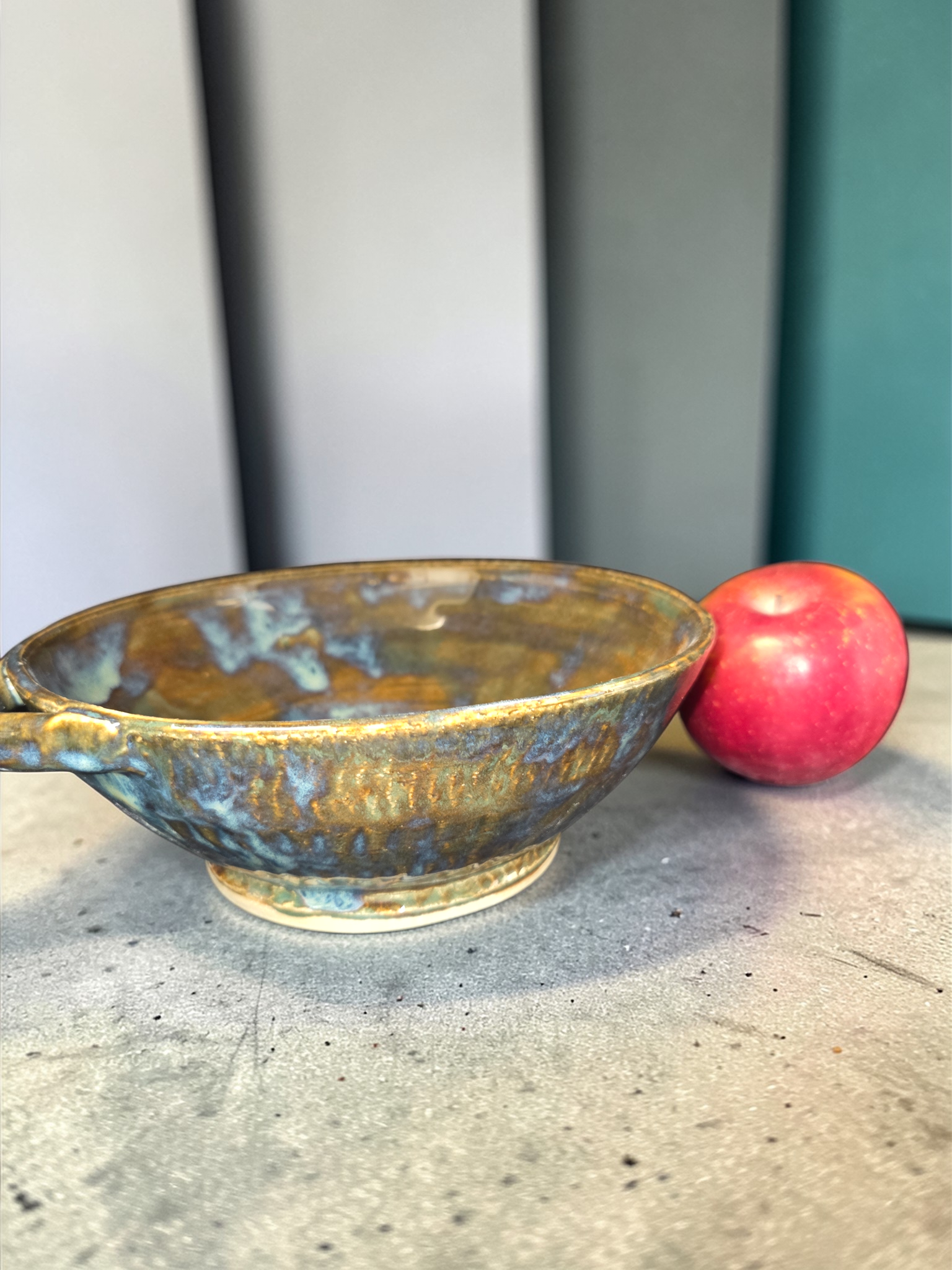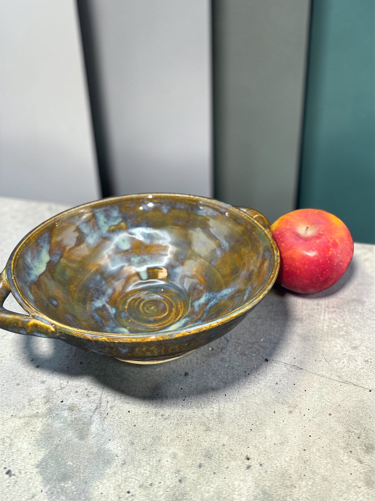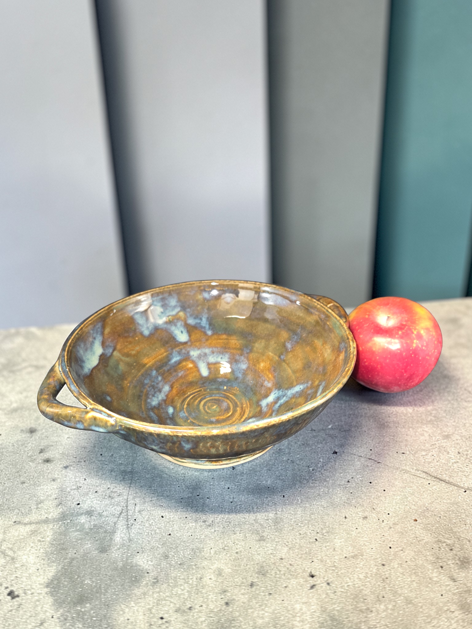 Earthtone stoneware oven-proof serving bowl—handcrafted in Gresham, Oregon. Wheel-thrown and finished with layered glazes inspired by natural clay strata, this sturdy bowl brings warm, muted tones to the table. Made from high-fire stoneware and tested for oven, microwave, and dishwasher use, it’s ideal for roasting, baking, serving, and everyday meals. This piece is carved and glazed to show subtle variations in color and texture, Practical, durable, and quietly elegant, it complements both rustic and modern table settings.