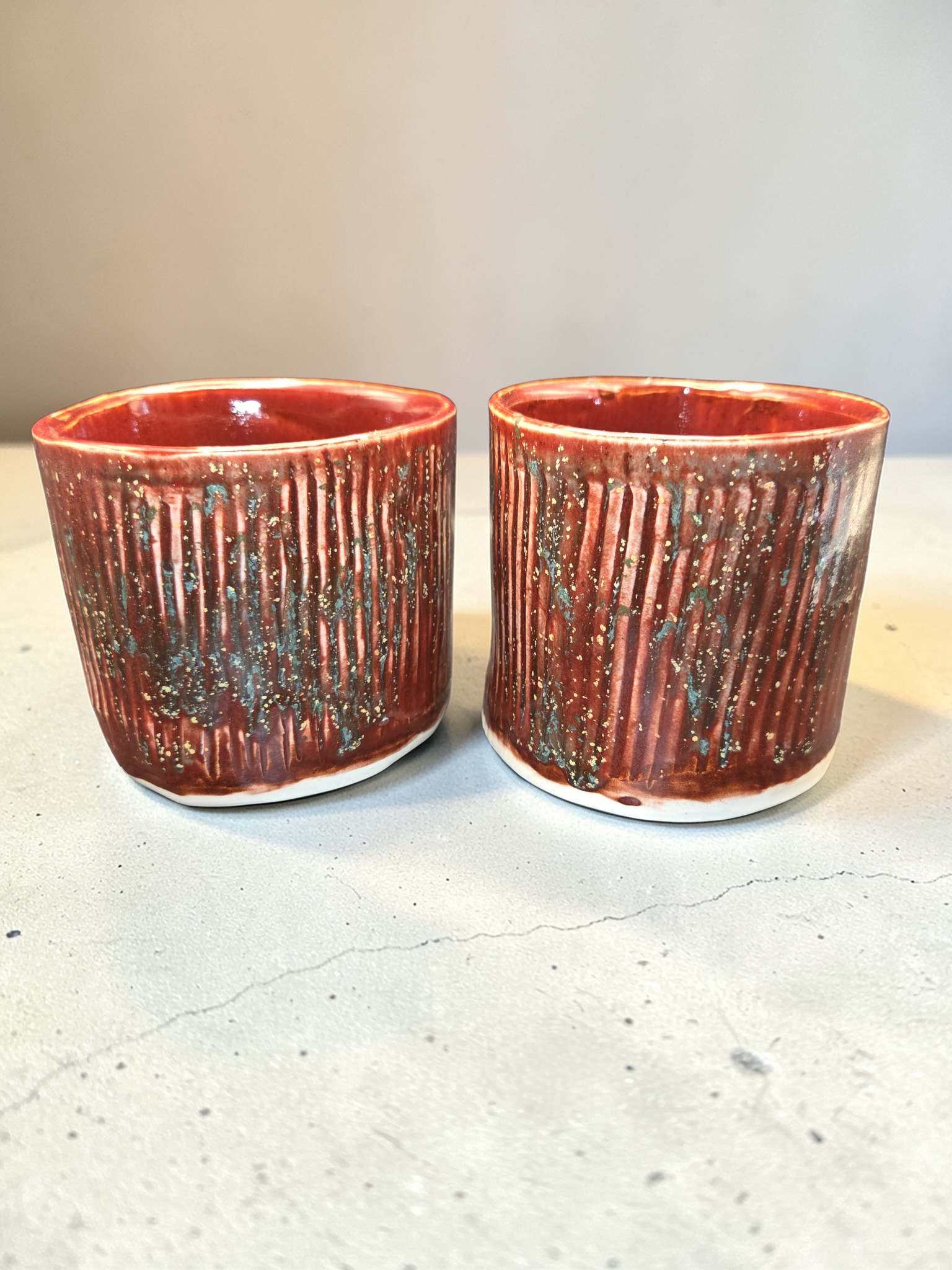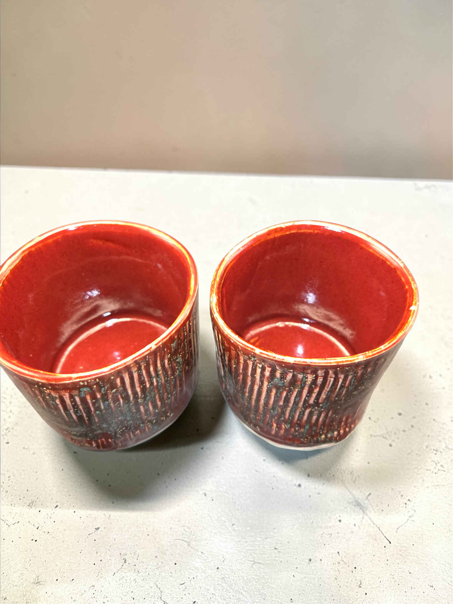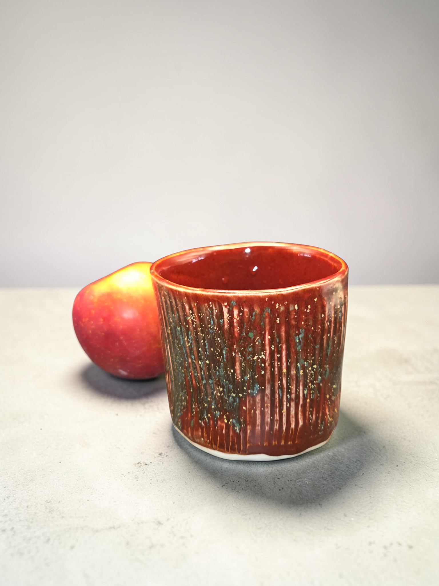 Generous 16-ounce ramakin perfect for individual casseroles, soufflés, pot pies, baked desserts, or hearty sides. Handcrafted in Gresham, Oregon by Debbie Sharp, each piece is thrown and hand carved with care and finished deep red with green and yellow flecks for subtle, one-of-a-kind surface patterns. Thick-walled for even heat retention and a slightly flared rim for easy serving. Durable, food-safe glaze; oven, microwave, and dishwasher safe. Beautifully functional for everyday use or special meals — a dependable, artful addition to your kitchen.